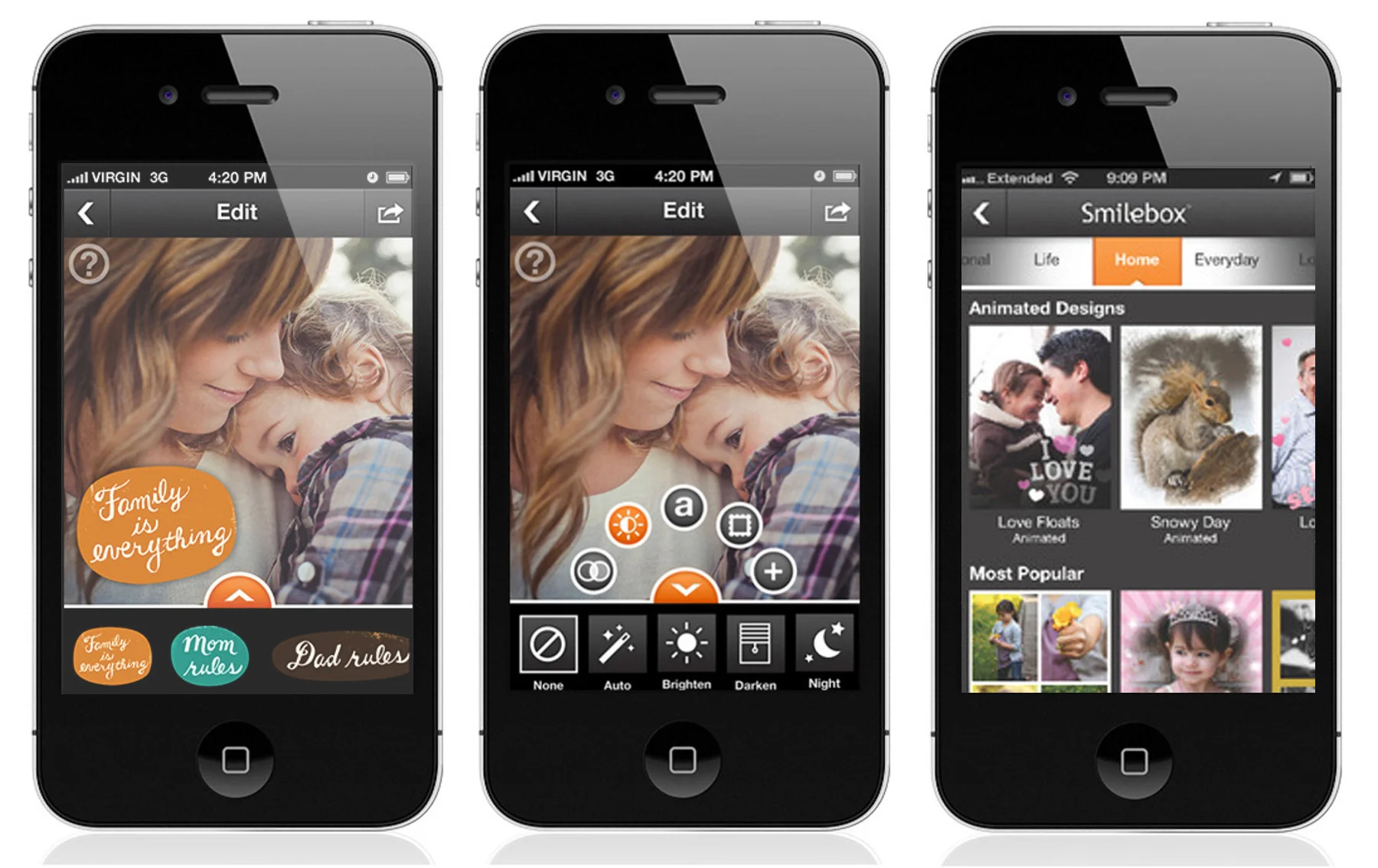 The visual design team worked to improve user flow, browsing, editing, and sharing interfaces while incorporating the evolution to the Smilebox brand ID.