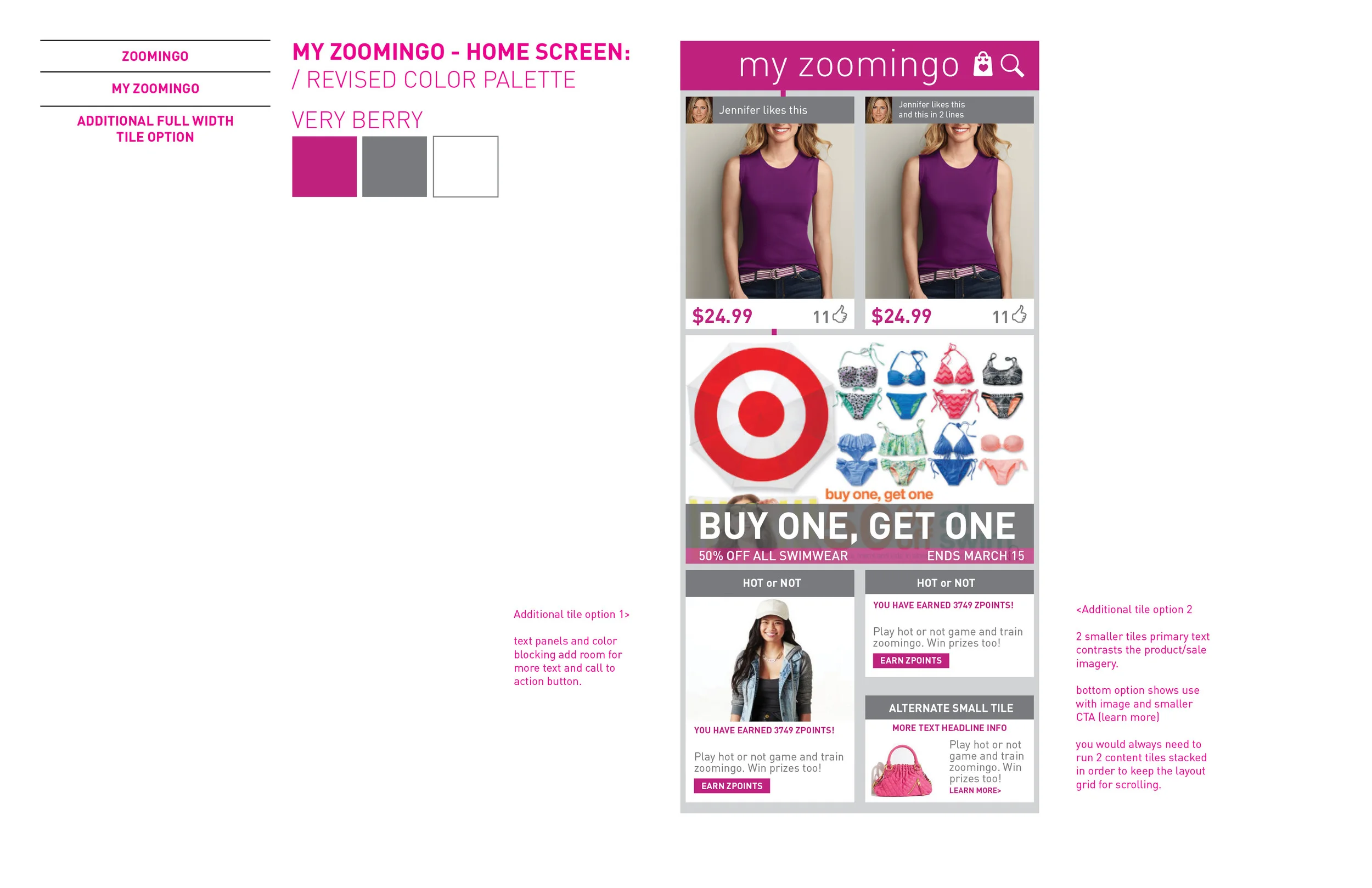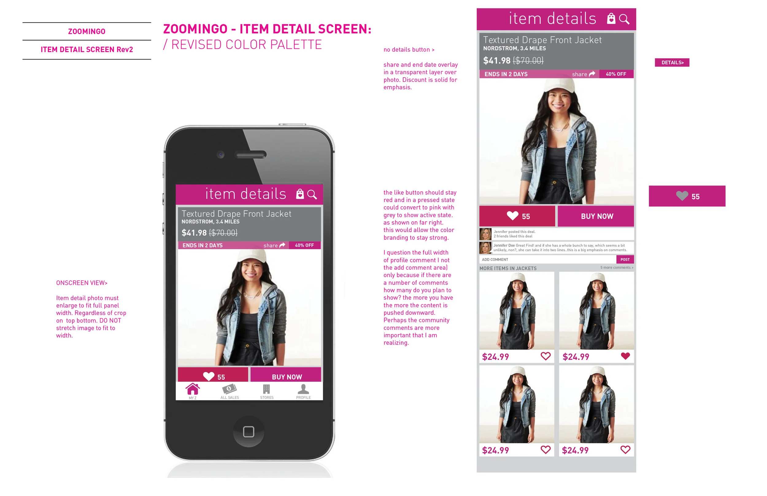 This mobile app alerts shoppers of deals using geofencing and proximity to store locations. The redesign of this UI required drilling into the product details from a feed that was based on aggregated weekly ads existing online. Taking a Pinterest approach using strong product images allowed browsing and customized search. This sample shows the creative direction for work in progress of 1 screen.