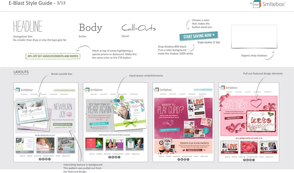 The smilebox catalog contains over 1000 animated photo sharing design templates. I provided creative direction for internal and external designers working on the desktop application including product UX, animated content, branding and online marketing.